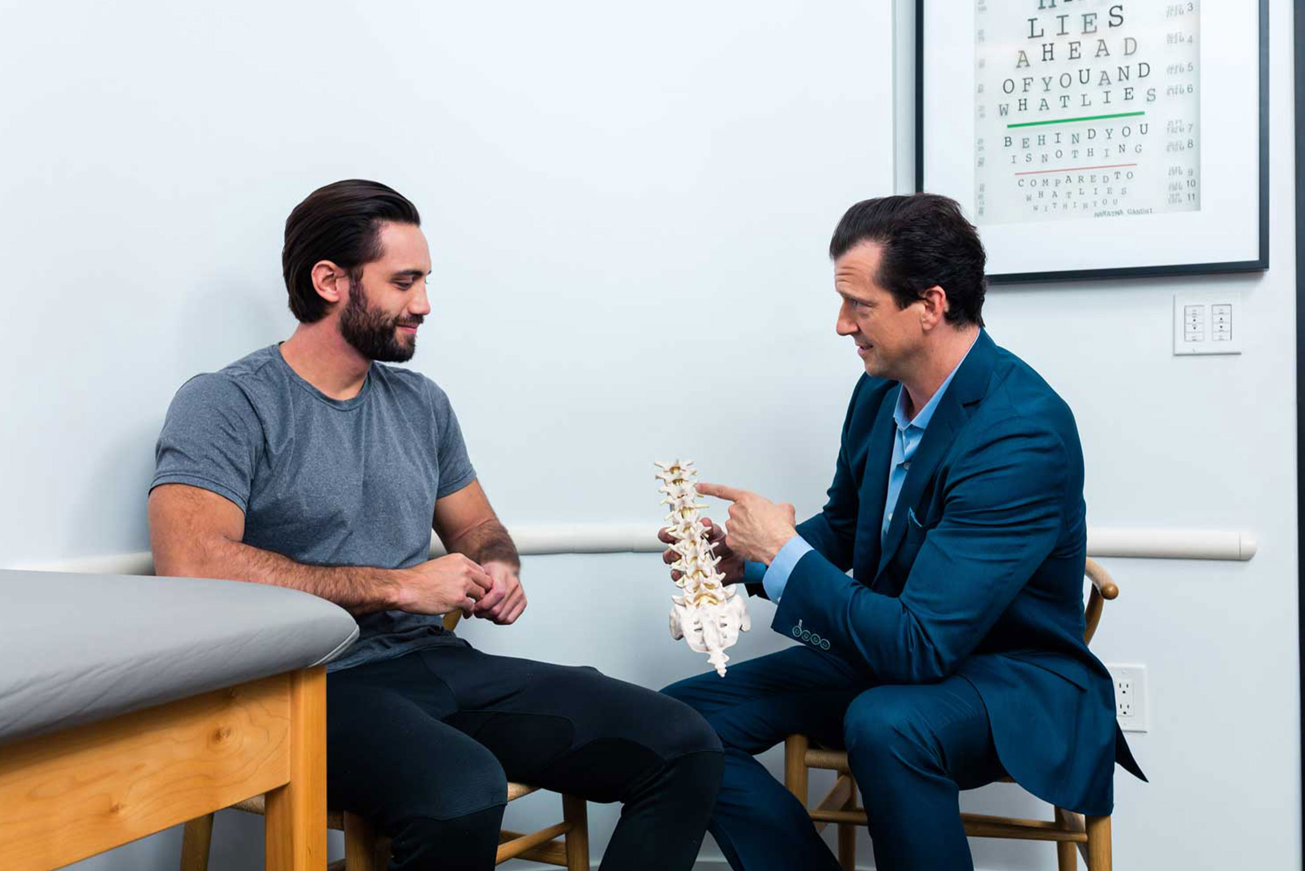 The physician will talk to you about your symptoms, overall health, and lifestyle and feel your spine for abnormalities or deformities.